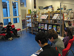 Le CDI, situé à côté du hall d' accueil, reçoit élèves et enseignants tout au long de la semaine pour des activités de lecture, de recherches, de séances d' enseignement.